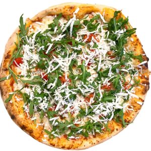 Sos rosii, mozzarela, rucola, rosii cherry, telemea